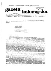 Korzystając z okazji przypominamy, iż ?Gazeta Kołomyjska" ukazuje się od 1993 i łącznie z tym numerem Czytelnicy otrzymali dotychczas 35 Gazet, z czego tylko 9 pierw?szych to były numery pojedyncze, a pozostałe to przede wszystkim podwójne, a kilka to po?trójne. Na pamięć zasługuj ą również dwie nasze koleżanki-kołomyjanki - obie już nieżyjące -panie Halina Ciołkosz-Łupinowa i Janina Ławryńczuk, które przez wiele lat wspierały Re-